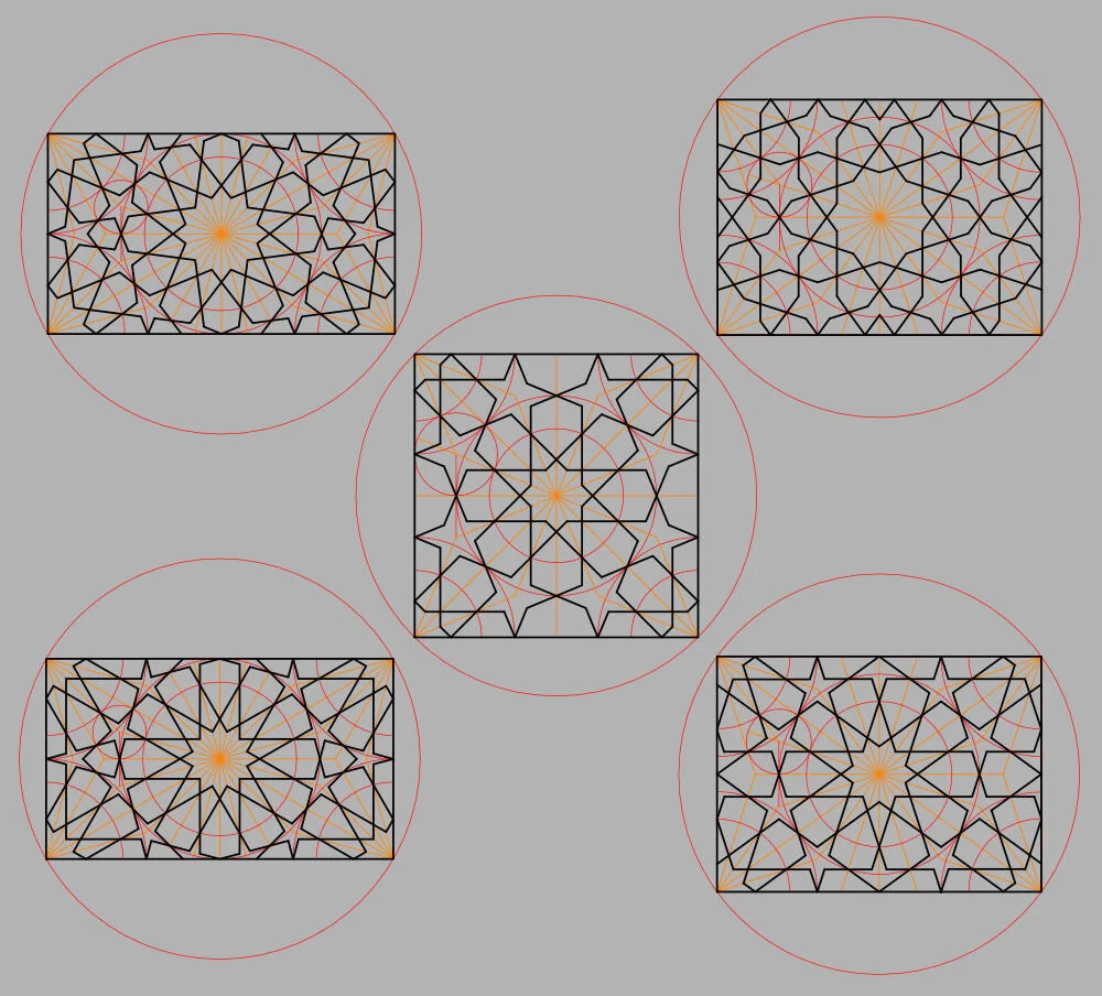 The rosette motif in Islamic geometric art is quite distinctive. The designs appeared somewhere around the Caspian and Black seas over 1000 years ago. One of the remarkable things about this family of designs is that almost all of them share the same system of proportions. Those proportions appeared in the first patterns and have remained unchanged across those 1000 years.